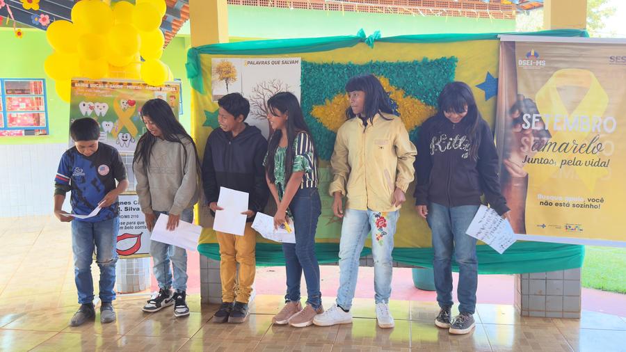 Na manhã desta segunda-feira, a Escola Municipal Joãozinho Carapé, em parceria com o Posto de Saúde da comunidade indígena, promoveu um momento especial de reflexão e aprendizado sobre o Setembro Amarelo, campanha dedicada à valorização da vida e à prevenção ao suicídio. A atividade contou com a participação de alunos, professores e profissionais da saúde, que compartilharam conhecimentos e orientações sobre o tema.