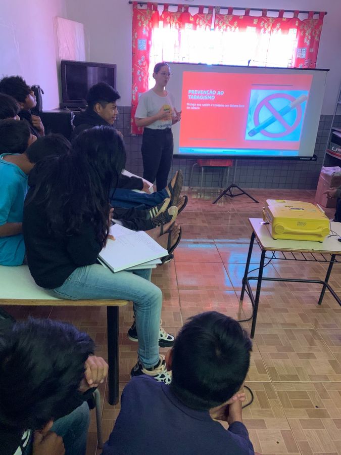 Durante a atividade, a psicóloga destacou os efeitos nocivos do cigarro para a saúde, explicando como o hábito prejudica não apenas quem fuma, mas também as pessoas ao redor. A palestra utilizou exemplos do cotidiano e uma linguagem adequada à faixa etária, despertando curiosidade e reflexão entre os estudantes.