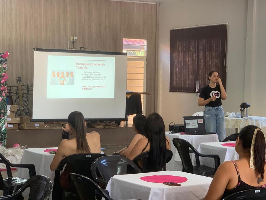 Durante o encontro, as gestantes participaram de um momento especial de aprendizado e troca de experiências. A psicóloga Camila ministrou uma palestra sobre saúde mental na gestação, abordando a importância do equilíbrio emocional, dos cuidados psicológicos e do apoio familiar durante essa fase tão significativa da vida. A profissional também apresentou orientações práticas que ajudam as mães a identificarem sinais de ansiedade, estresse e inseguranças comuns no período gestacional.