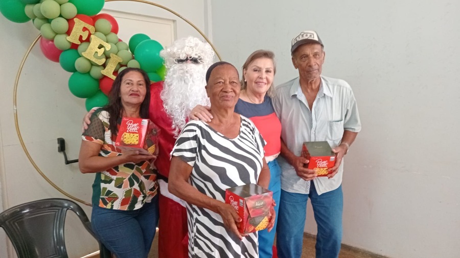 Durante a programação, houve a entrega de panetones a todos os participantes, além da presença do Papai Noel, que levou ainda mais alegria ao evento ao distribuir bombons, fortalecendo o clima de confraternização e espírito natalino.