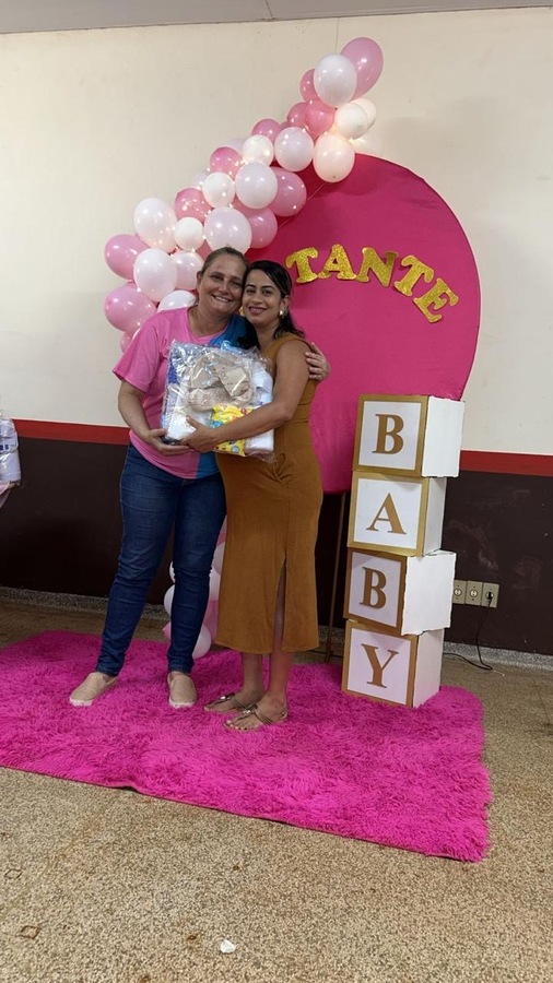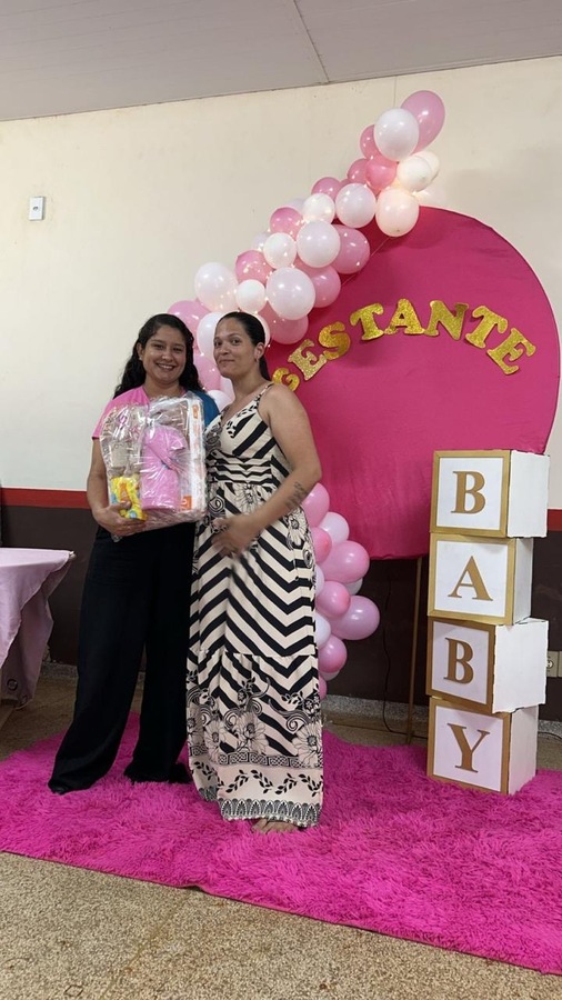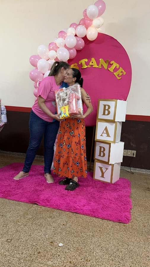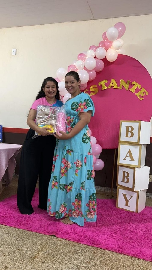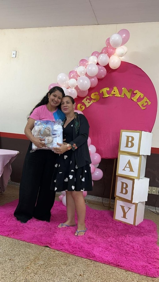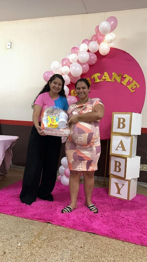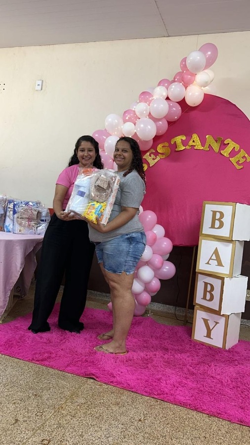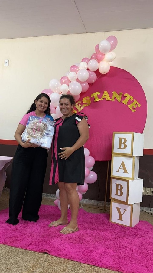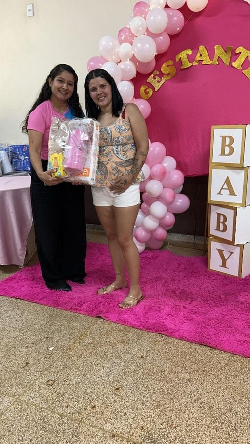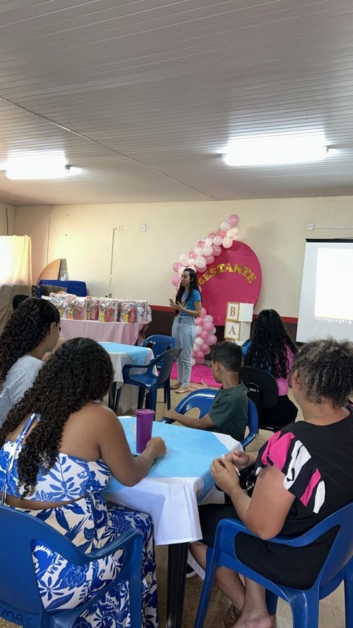 A programação incluiu uma palestra educativa sobre higiene do bebê, ministrada pela enfermeira Carol, que trouxe orientações importantes para as futuras mamães, destacando os cuidados essenciais nos primeiros dias de vida do recém-nascido.