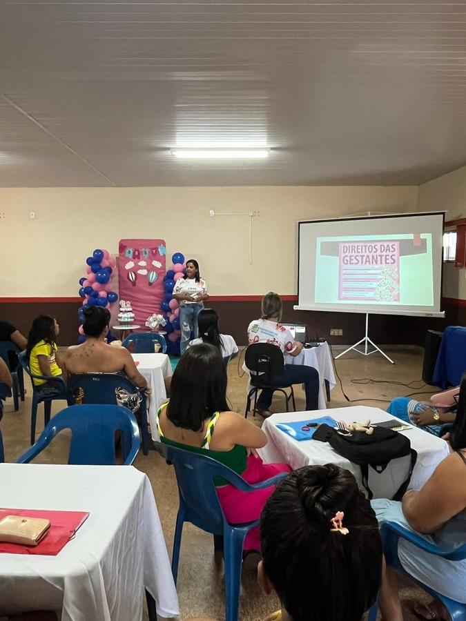 A programação contou com a palestra “Direito da Mulher durante a Maternidade”, ministrada pela assistente social Danieli Lemos. Durante o encontro, foram abordadas informações essenciais sobre os direitos das gestantes e puérperas, fortalecendo o conhecimento e incentivando o cuidado no pré e pós-parto.
