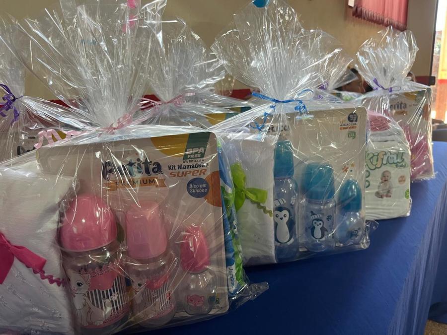 Ao final da atividade, foram entregues kits às participantes, além de um coffee break, proporcionando um momento de integração, troca de experiências e acolhimento entre as futuras mamães.